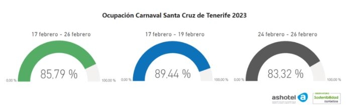 La Asociación Hotelera y Extrahotelera de Tenerife, La Palma, La Gomera y El Hierro, Ashotel, informa que el carnaval de Santa Cruz de Tenerife podría ‘explotarse’ durante todo el año, por la gran ocupación que ha tenido del 17 al 26 de febrero, alcanzando el 85% de ocupación, y con un pico de casi el 90% el primer fin de semana, y un 83% el segundo fin de semana, según los datos ofrecidos por el Observatorio de Sostenibilidad y Competitividad Turística de Ashotel.