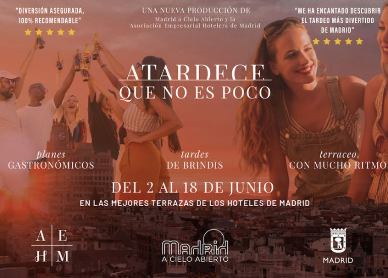 La Asociación Empresarial Hotelera de Madrid (AEHM) organiza por quinto año consecutivo la campaña ‘Madrid a Cielo Abierto‘ que, más de 30 hoteles de Madrid abrirán sus terrazas, azoteas y jardines con multitud de propuestas para dar la bienvenida al verano.