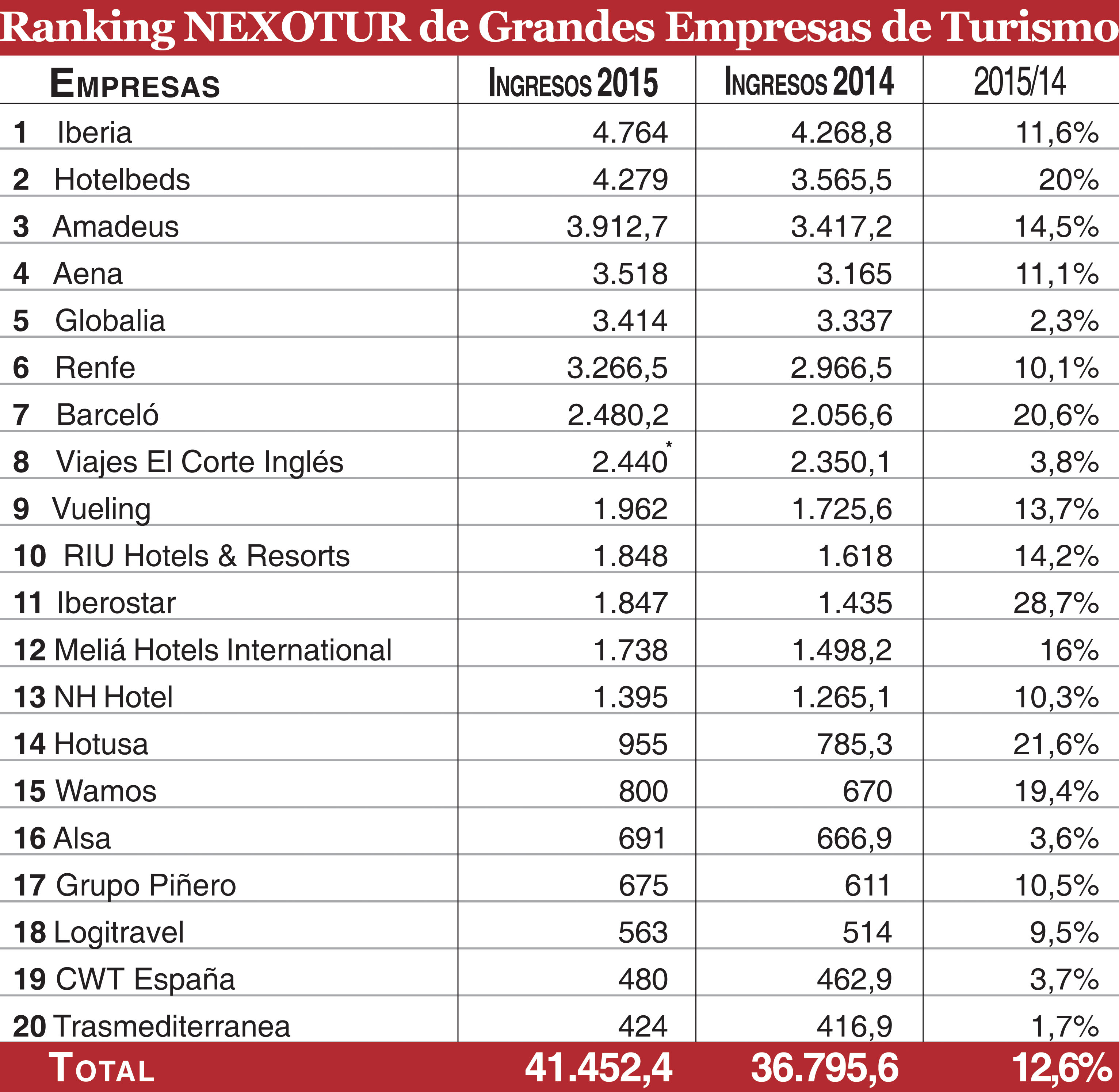 Los ingresos de los 20 grandes del Turismo crecen un 12% hasta 41.452 millones