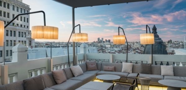 El NH Collection Madrid Gran Vía, se encuentra situado a cuatro minutos andando de esa plaza. En las dos últimas plantas del hotel, se encuentra Picalagartos Sky Bar & Restaurant.