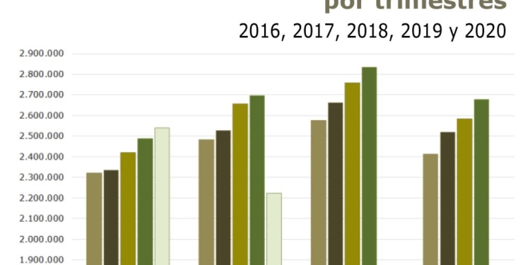 En el segundo trimestre de, 2020 el Sector Turístico ha contado con 2.763.305 trabajadores en activo, un 8,9% menos que en el mismo periodo del año anterior. Los activos se clasifican en ocupados y parados. Cabe destacar que en este periodo ya se recogen los efectos sobre el empleo de la práctica paralización de la actividad turística, en la que el impacto de la declaración del estado de alarma en España sólo comenzó a ser apreciable a partir de la semana 11 de las 13 contempladas, por lo que su influencia sobre la totalidad del primer trimestre quedó muy diluida. No obstante, no se incluyen como parados a los trabajadores afectados por Expediente de Regulación Temporal de Empleo (ERTE) cuando existe una garantía de reincorporación al puesto de trabajo una vez finalizado el periodo de suspensión como consecuencia de la pandemia, por lo que se siguen considerando ocupados.