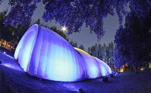 Su tecnología permite la instalación básica en solo cinco horas mientras que su diseño y altura de ocho metros dotan al espacio de una acústica y visión estupenda. Sus robustas paredes de doble membrana lo hacen resistente y estable ante cualquier adversidad climatológica. Su color blanco e iluminación LED permite vestir toda la estructura con los colores corporativos de la marca.