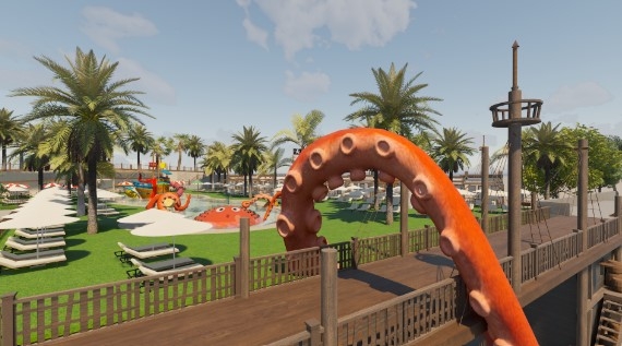 La zona ‘Battleship Lagoon’ será el corazón de la acción familiar y contiene una de las joyas del resort: el primer barco pirata del mundo que integra rocódromo y zona multiaventura con tirolinas. Será la piscina principal del resort y, además de contar con toboganes y diversos elementos de juego, el espacio dispondrá de servicios de restauración, incluyendo un bar para mayor comodidad de los visitantes.