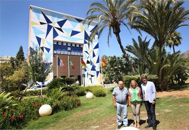 El artista Curro Leyton ha realizado un mural con formas geométricas que simbolizan el sol, el mar y el litoral costasoleño que ha dado como resultado «elevar la propia categoría de la entrada del Palacio de Congresos, aportándole a este emblema de Marbella un atractivo más para el nivel de la ciudad», ha destacado la alcaldesa, que ha querido felicitar personalmente al creador del mural.