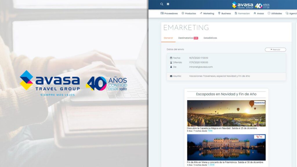 Estos elementos de e-marketing personalizables con los datos e imagen de cada agencia, están pensados y creados para que las agencias los reenvíen, de una forma fácil y ágil a las bases de datos de sus clientes mediante la misma Intranet del Grupo. Y desde Avasa recalcan que su objetivo es que estas herramientas sirvan de refuerzo, no solo para fomentar la venta sino también para mantener una constante comunicación agencia-cliente, tan importante hoy en día.