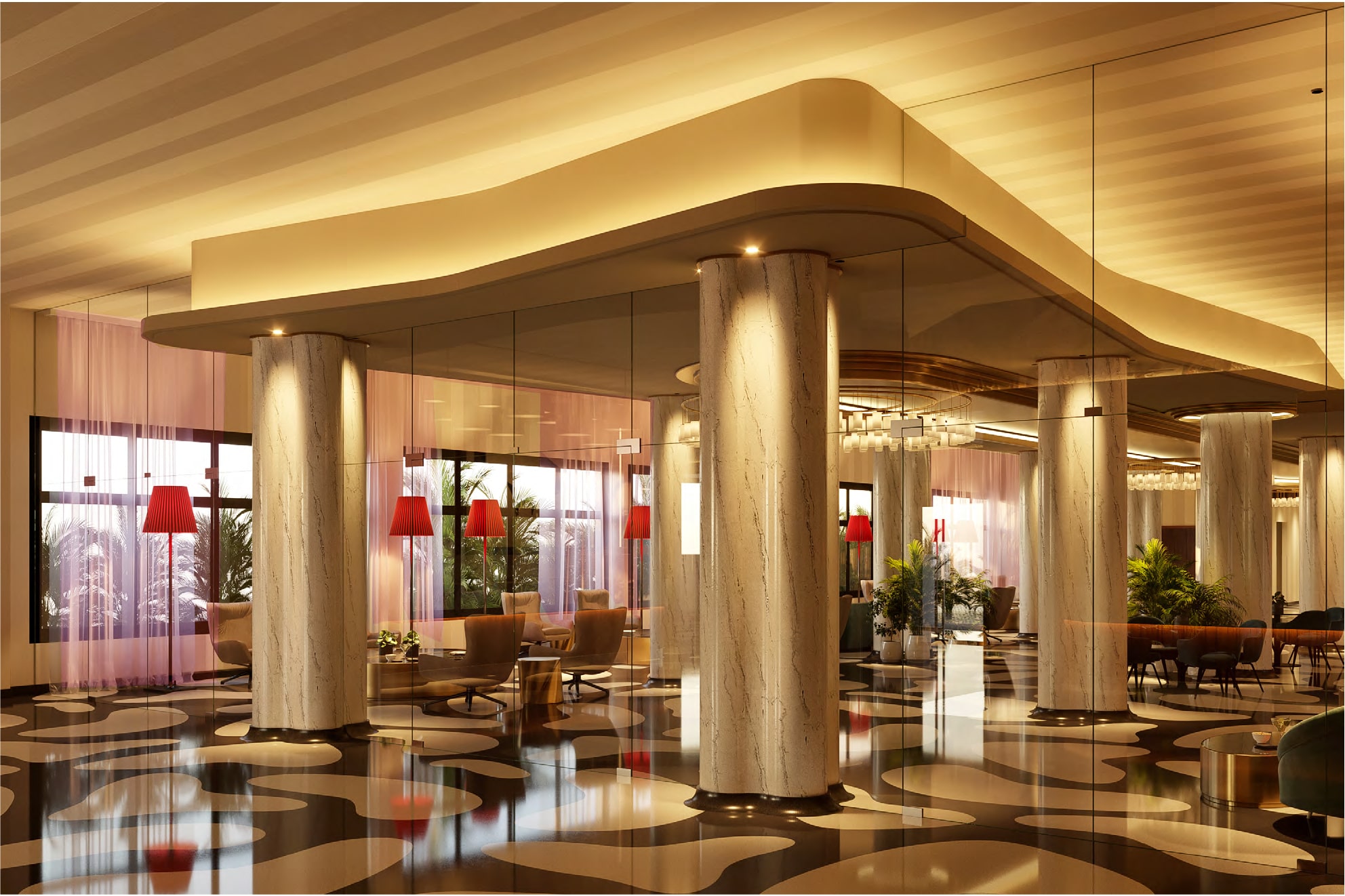 El proyecto, que comprende la rehabilitación de 206 habitaciones y 3 suites, de las 235 que componen el hotel, así como todas las zonas comunes, restaurantes y salones de convenciones, respeta y pone en valor los elementos protegidos de este icónico edificio construido en 1959 y catalogado como Bien de Interés Cultural. Los trabajos se iniciarán a principios de la semana que viene.