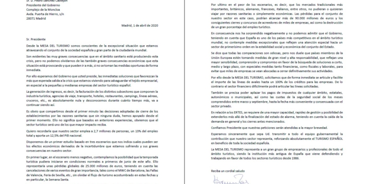 El presidente de la Mesa de Turismo reconoce que no puede admitir que el Gobierno «no contemple medidas excepcionales que reflejen una atención especial hacia un Sector de primerísimo orden en la estabilidad social y económica del conjunto del Estado». «Nos duele que países miembros de la Unión Europea estén tomando medidas de gran nivel y alta responsabilidad, que reflejan una mayor sensibilidad, comprensión y compromiso» aprobando medidas financieras, laborales y fiscales para favorecer a las empresas turística.