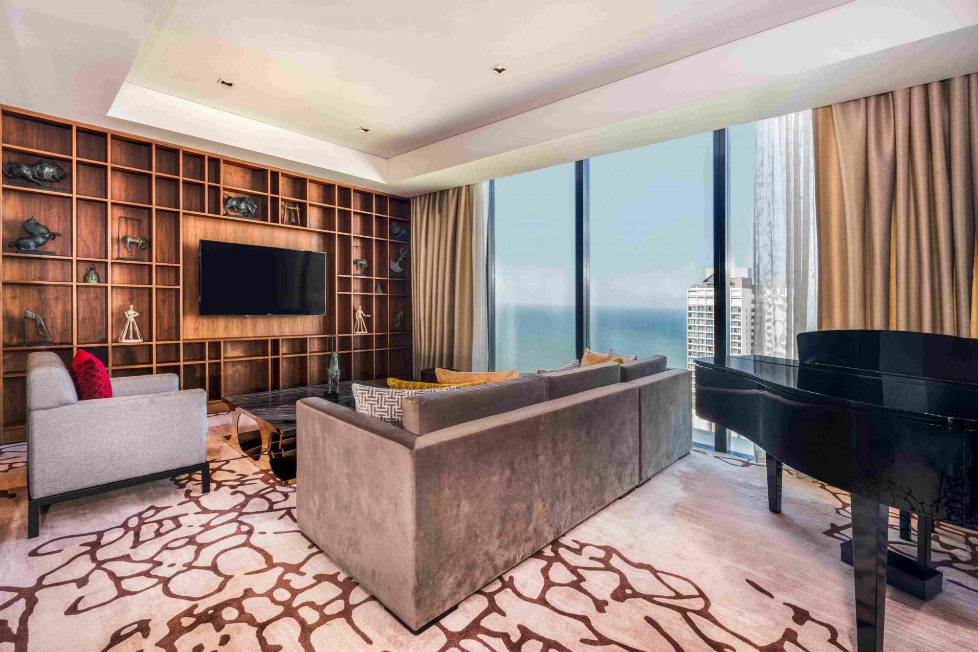 Este hotel de cinco estrellas cuenta con 219 habitaciones y suites de 33 a 254 m2, incluida la Suite Presidencial, la más grande de toda la ciudad. Todas las habitaciones cuentan con amplios ventanales que van del suelo al techo, y que ofrecen unas magníficas vistas del Océano Índico y de la ciudad.