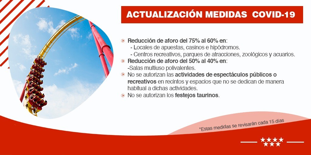 Las medidas adoptadas también cumplen las restricciones que la Comunidad de Madrid pondrá en marcha desde el 7 de septiembre.