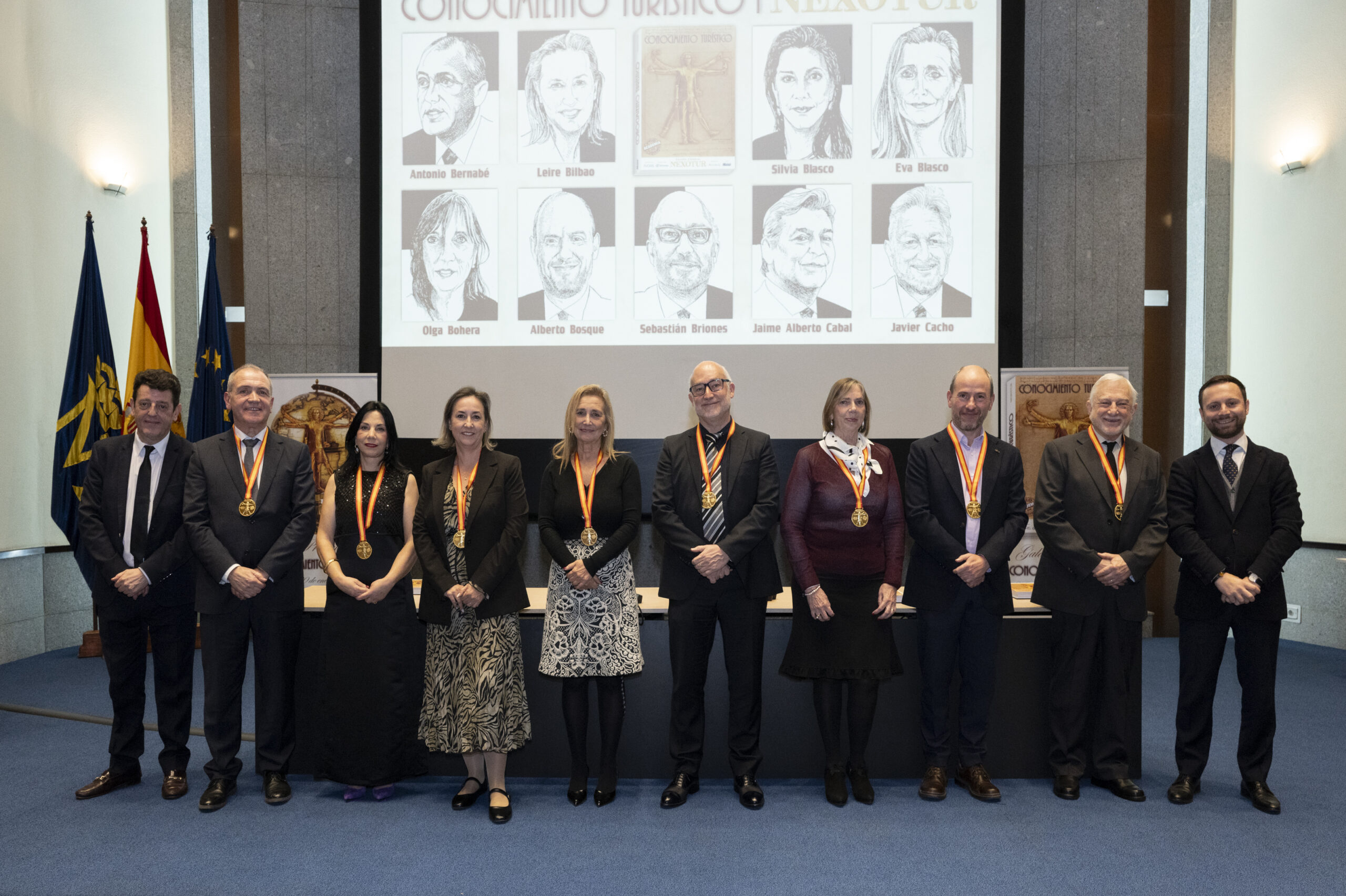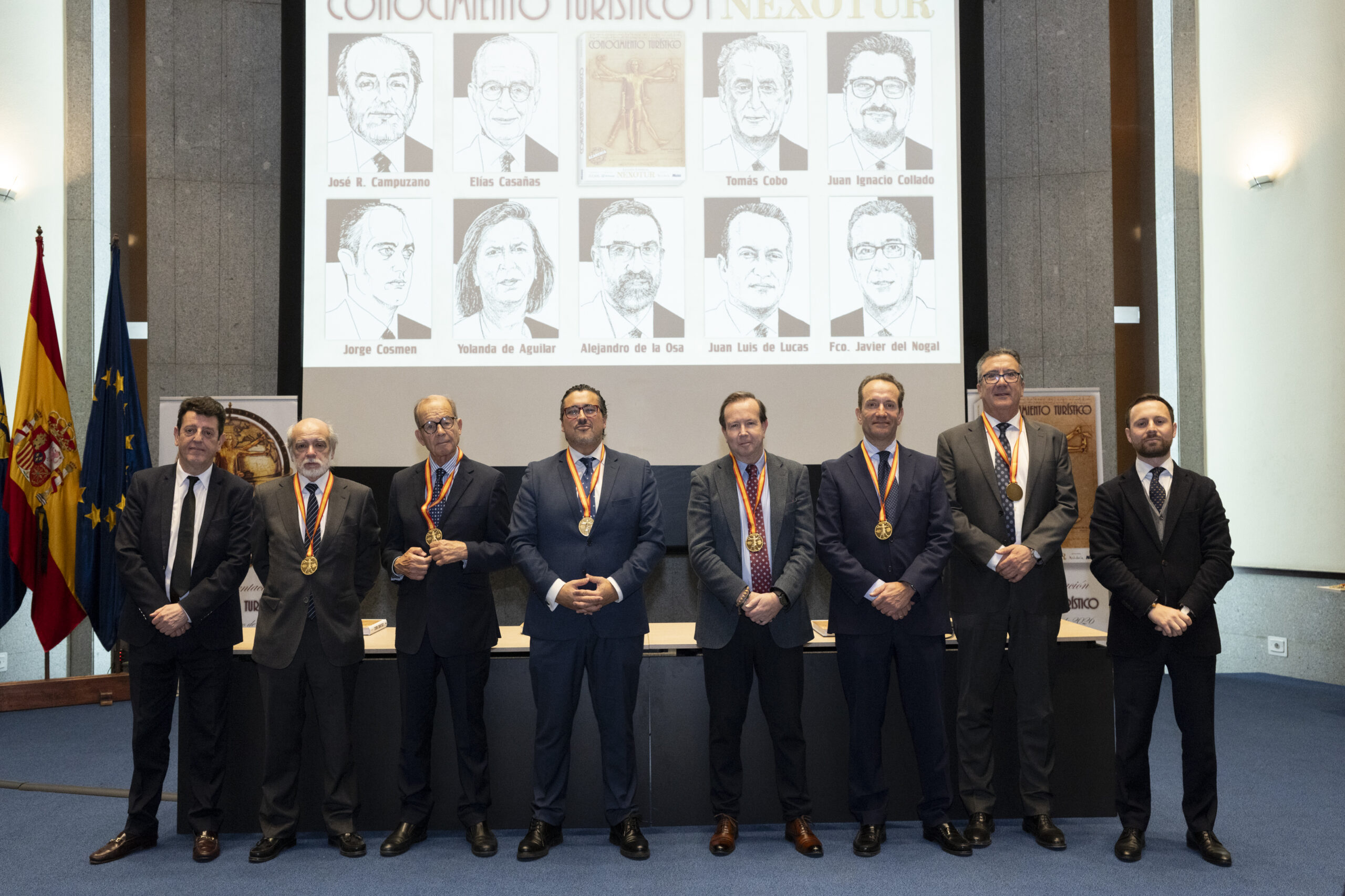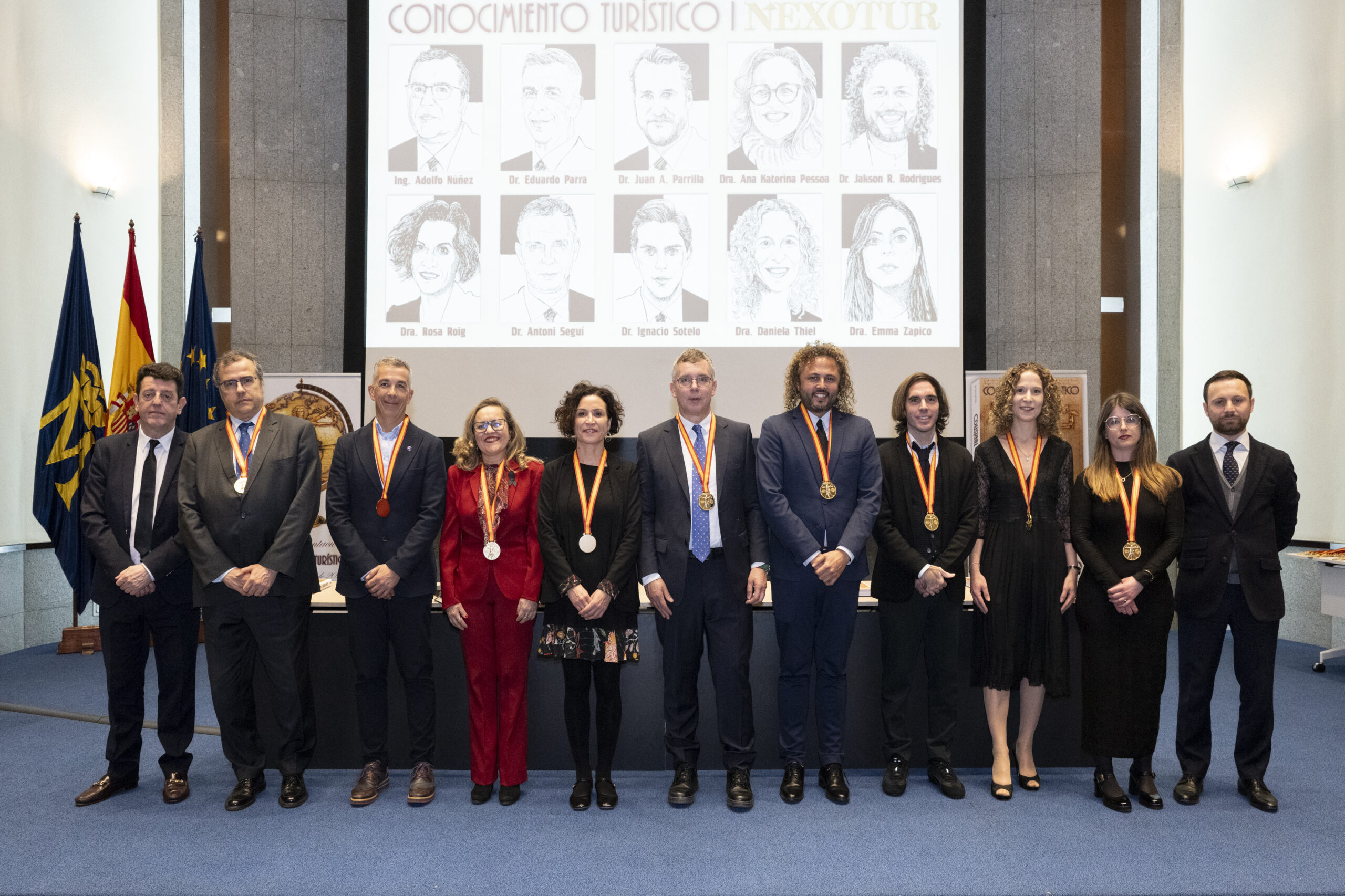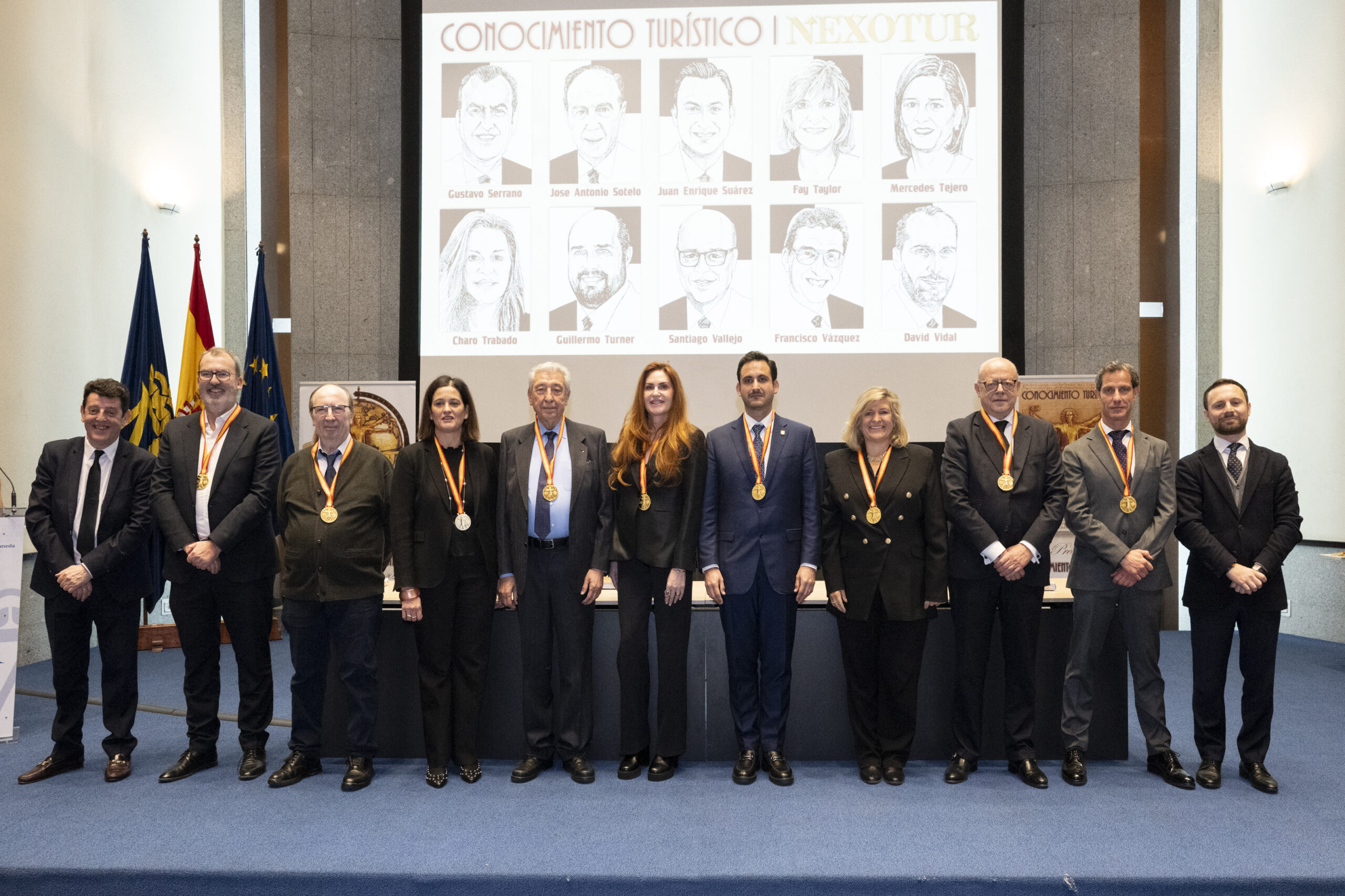 Los premiados se dirigieron al escenario del gran Auditorio de la Real Casa de la Moneda, donde el nuevo CEO del Grupo NEXO, Yago González, y el director de NEXOTUR, Eugenio de Quesada, les impusieron la Medalla del Conocimiento Turístico. Esta distinción, diseñada especialmente para la ocasión, representa el símbolo del turista concebido a partir del hombre de Vitruvio de Leonardo da Vinci, con las dos tipologías del Turismo: la vacacional y la profesional.