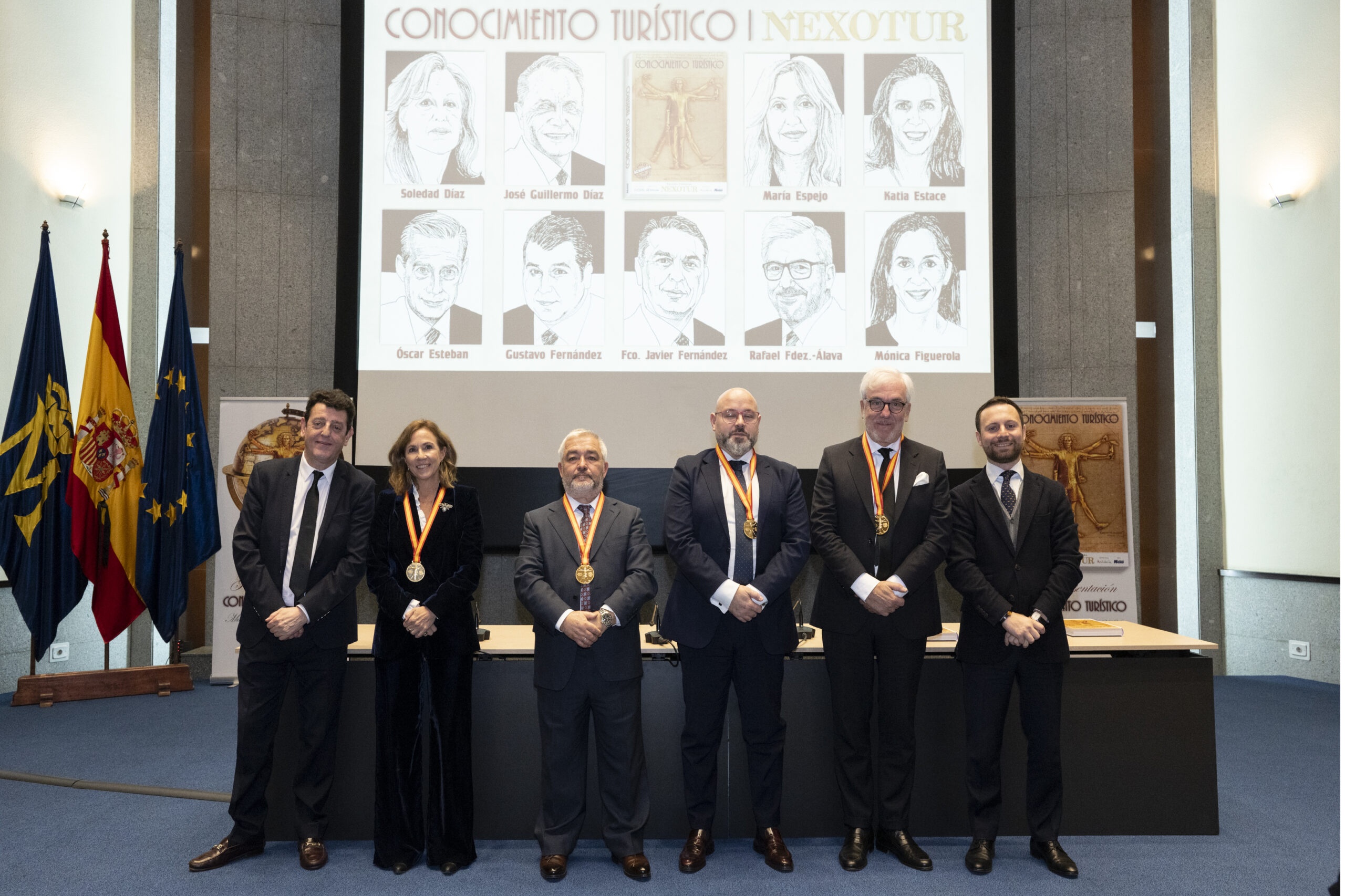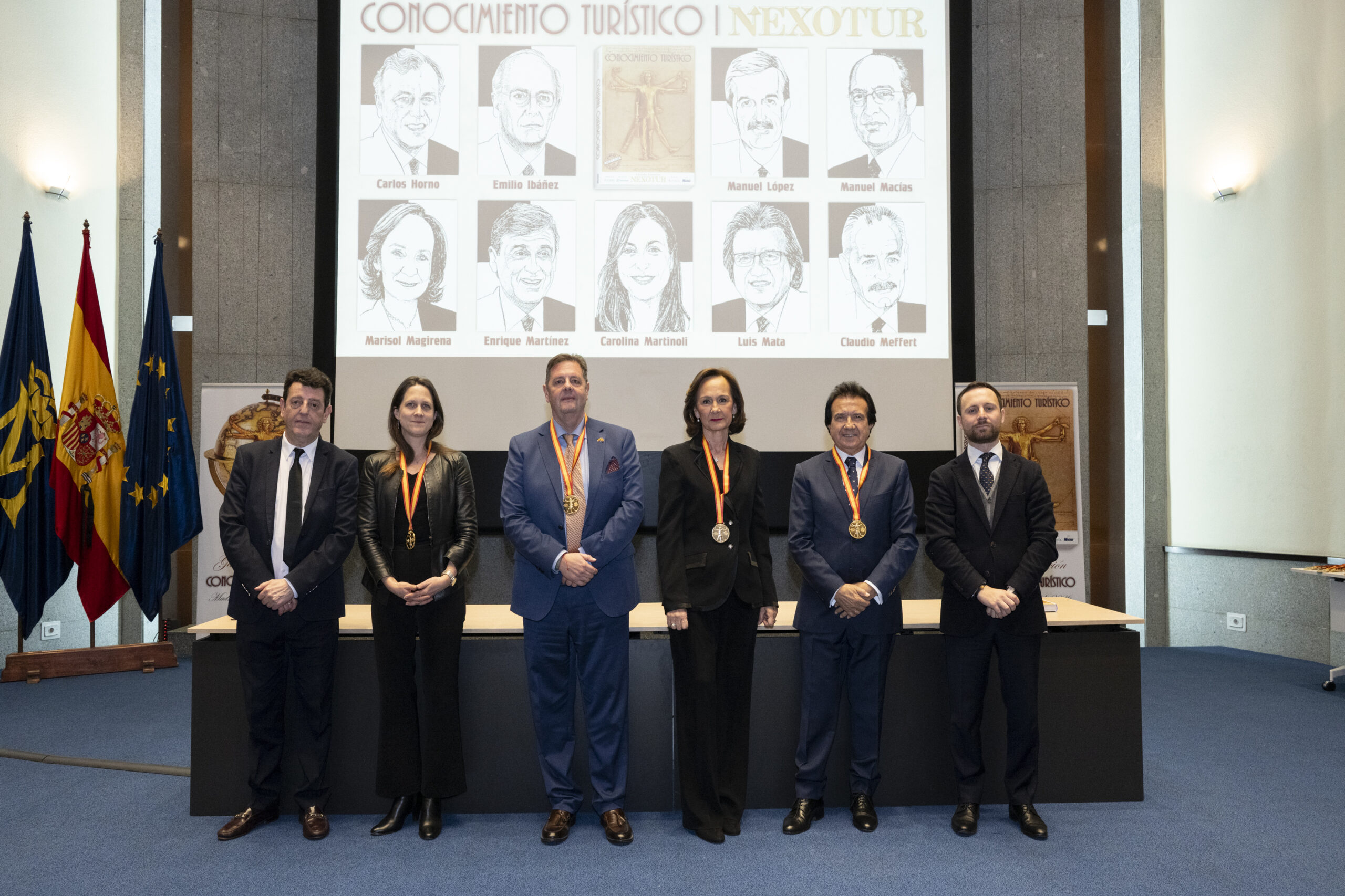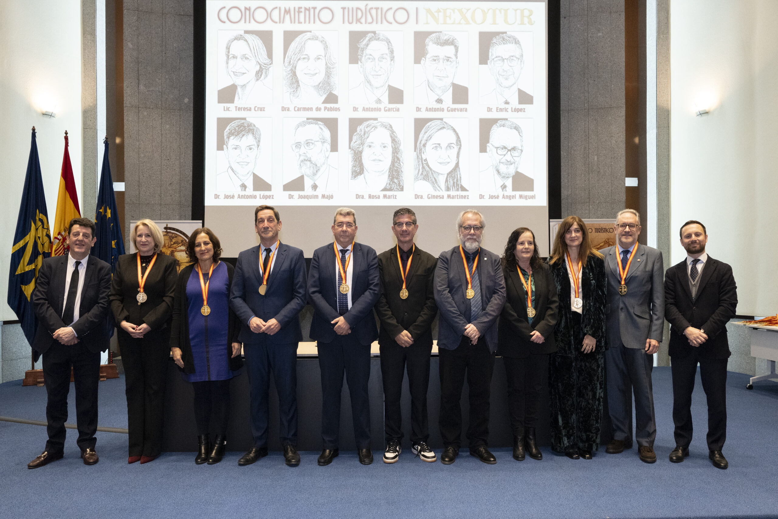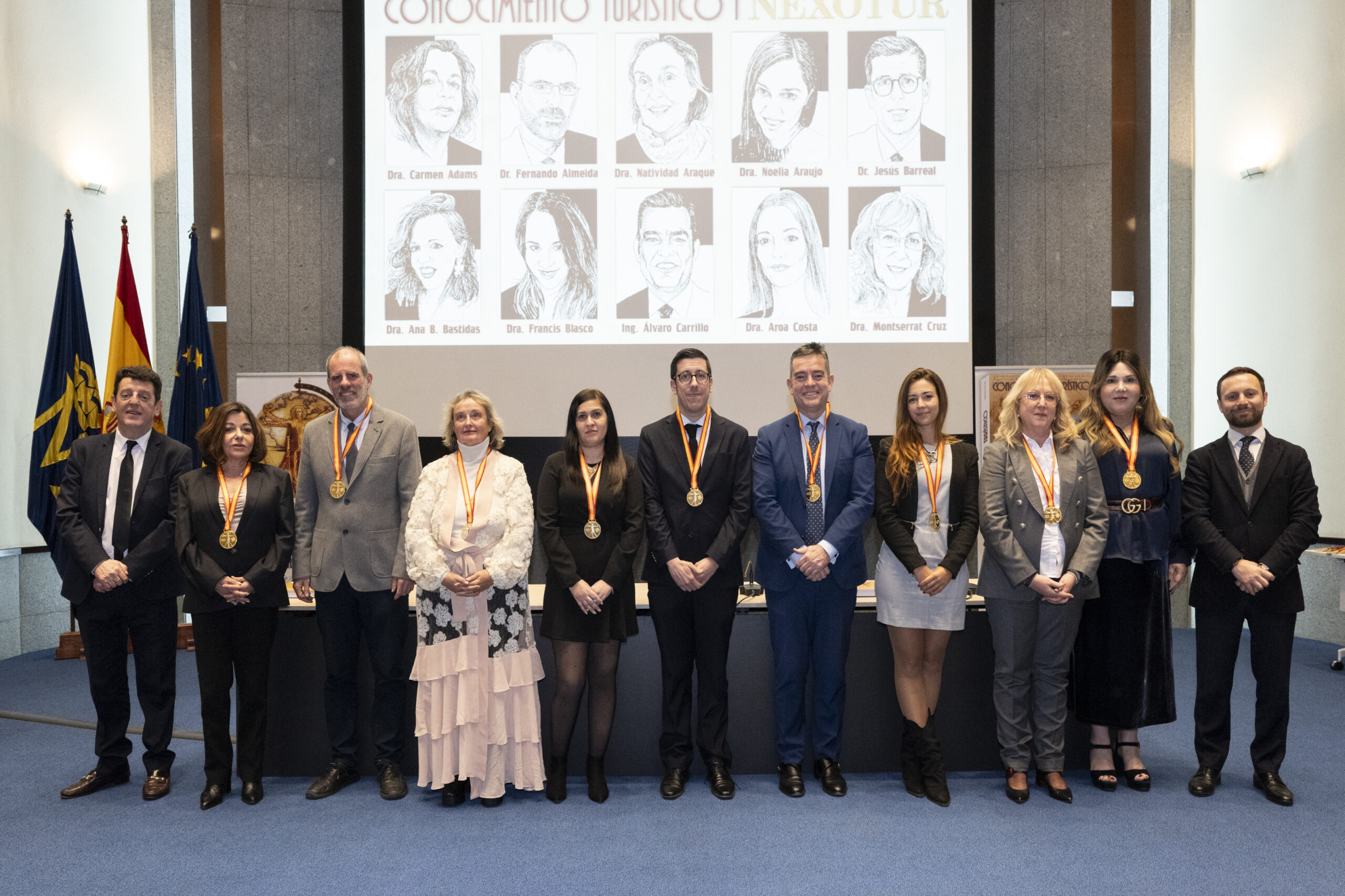 Los premiados se dirigieron al escenario del gran Auditorio de la Real Casa de la Moneda, donde el nuevo CEO del Grupo NEXO, Yago González, y el director de NEXOTUR, Eugenio de Quesada, les impusieron la Medalla del Conocimiento Turístico. Esta distinción, diseñada especialmente para la ocasión, representa el símbolo del turista concebido a partir del hombre de Vitruvio de Leonardo da Vinci, con las dos tipologías del Turismo: la vacacional y la profesional.
