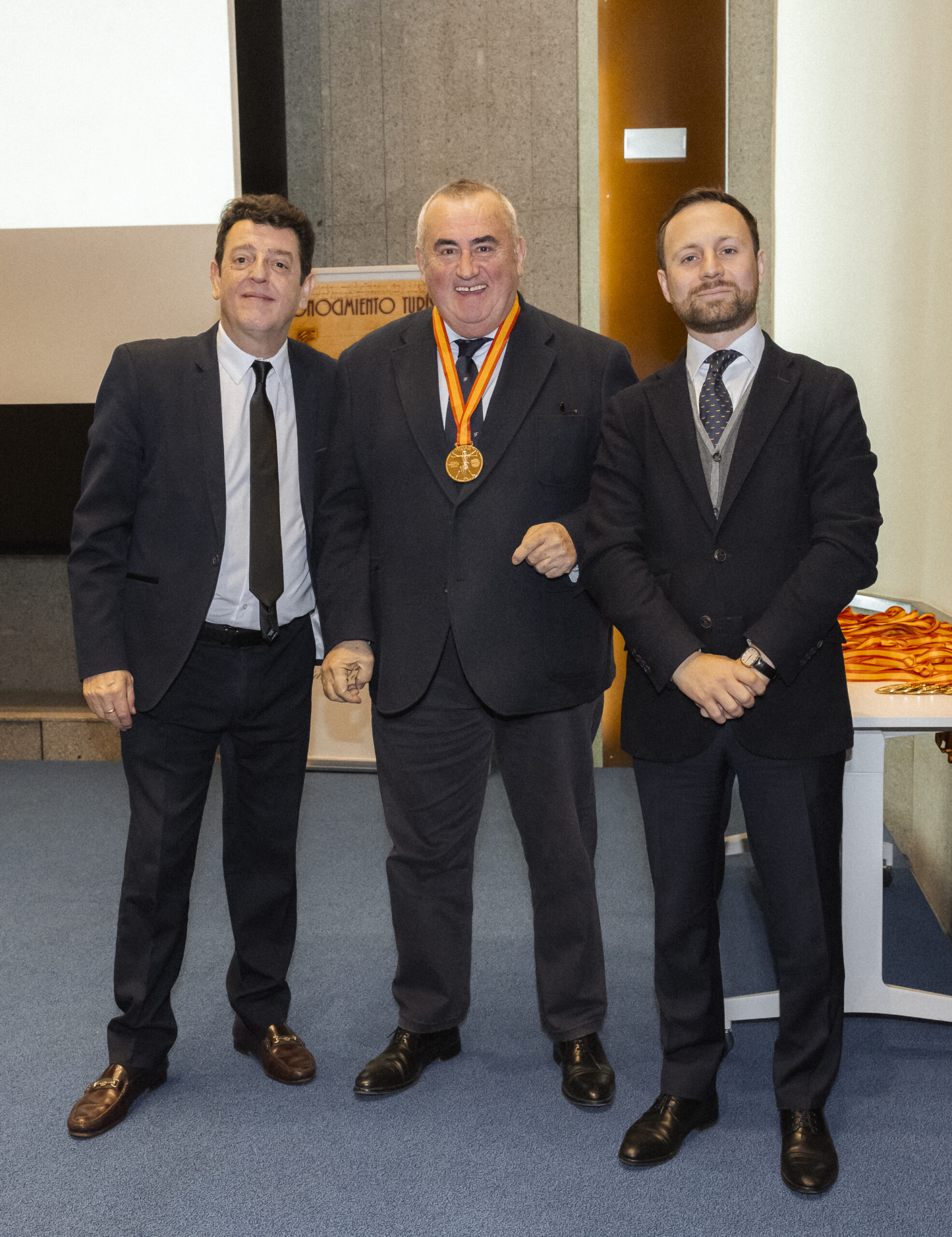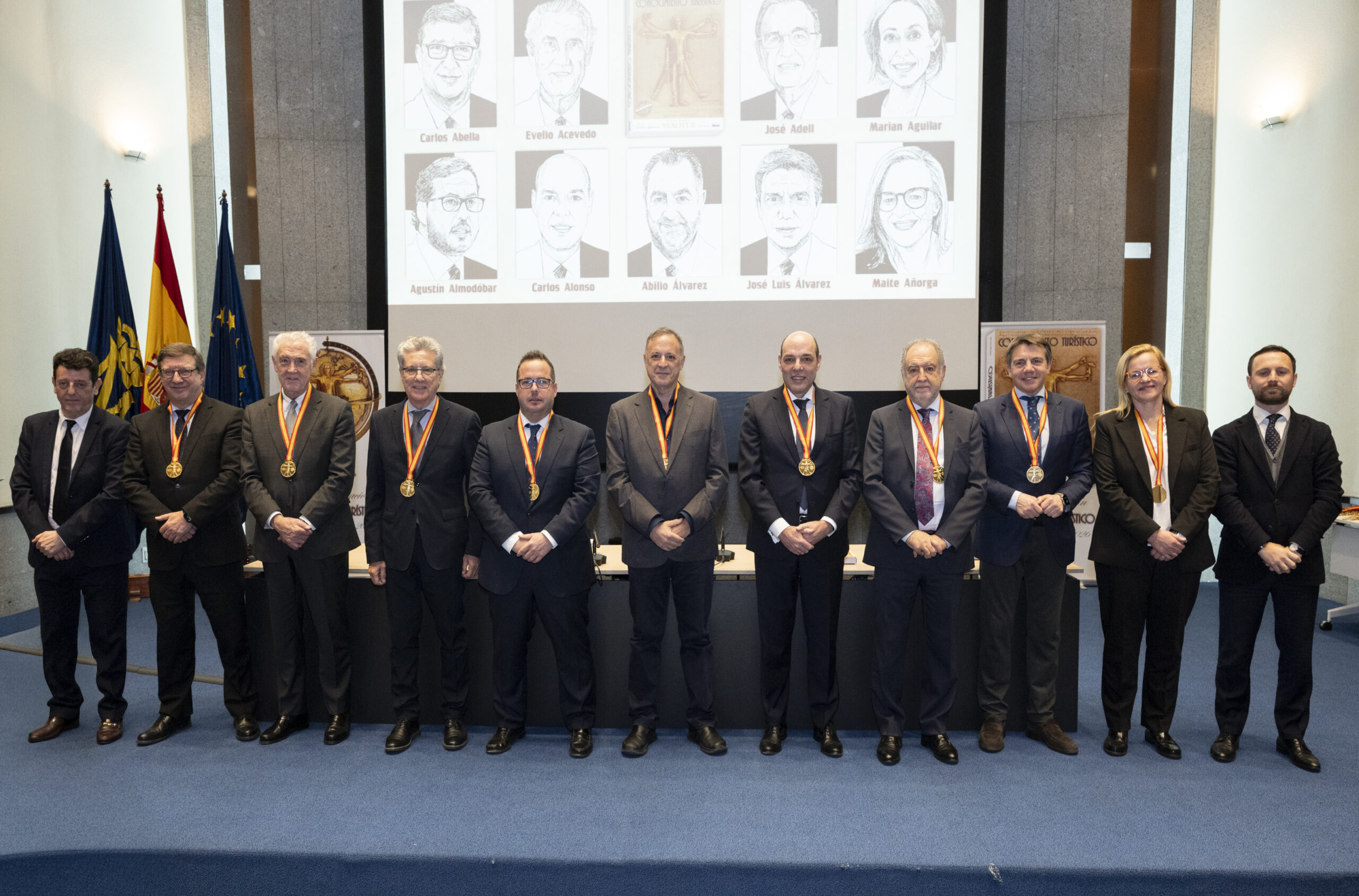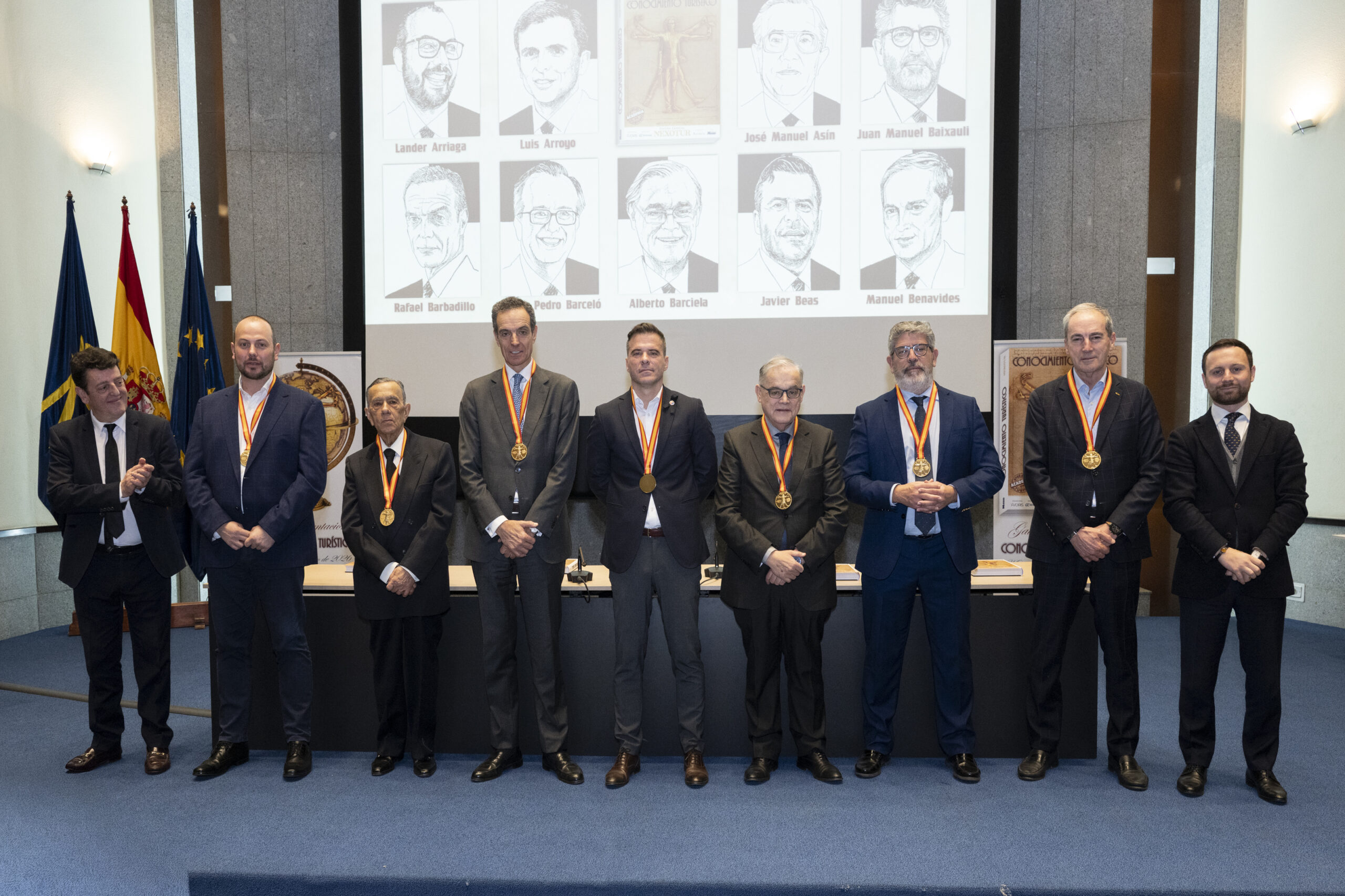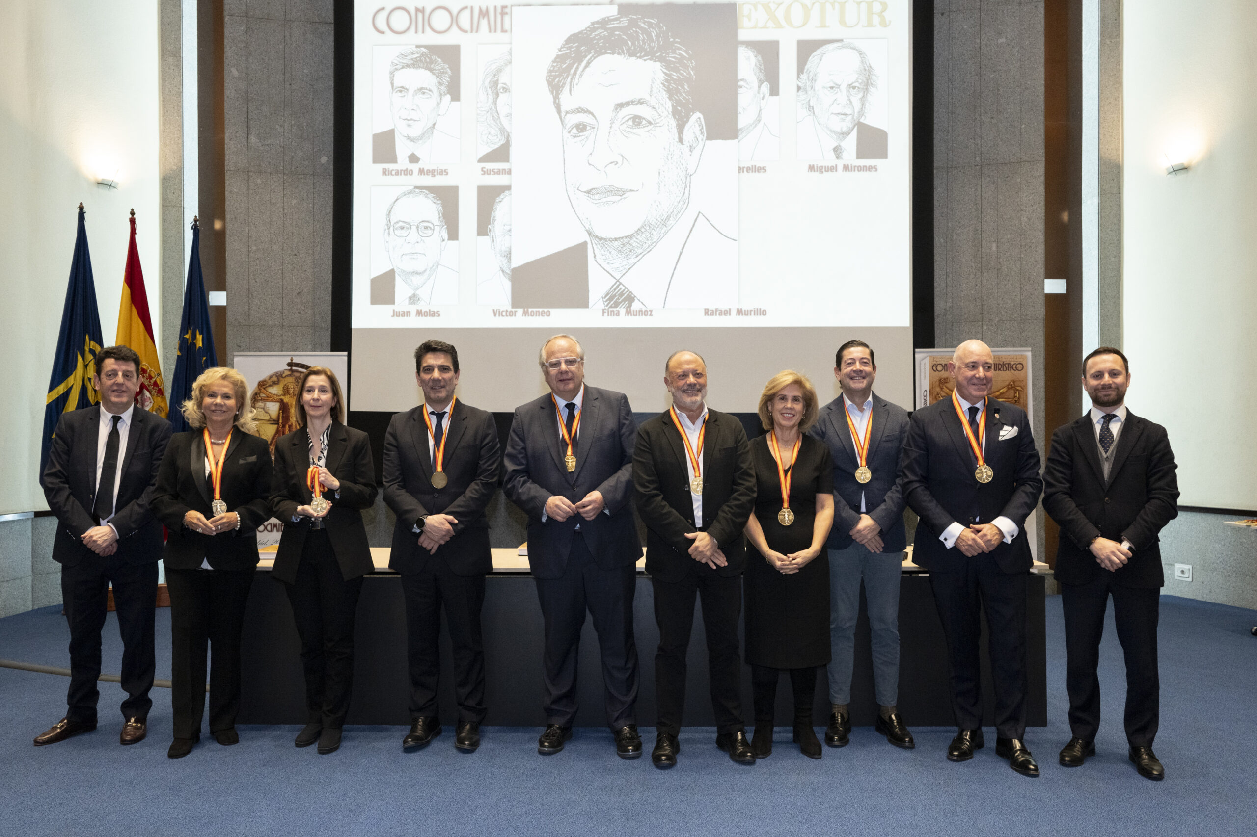 Los premiados se dirigieron al escenario del gran Auditorio de la Real Casa de la Moneda, donde el nuevo CEO del Grupo NEXO, Yago González, y el director de NEXOTUR, Eugenio de Quesada, les impusieron la Medalla del Conocimiento Turístico. Esta distinción, diseñada especialmente para la ocasión, representa el símbolo del turista concebido a partir del hombre de Vitruvio de Leonardo da Vinci, con las dos tipologías del Turismo: la vacacional y la profesional.