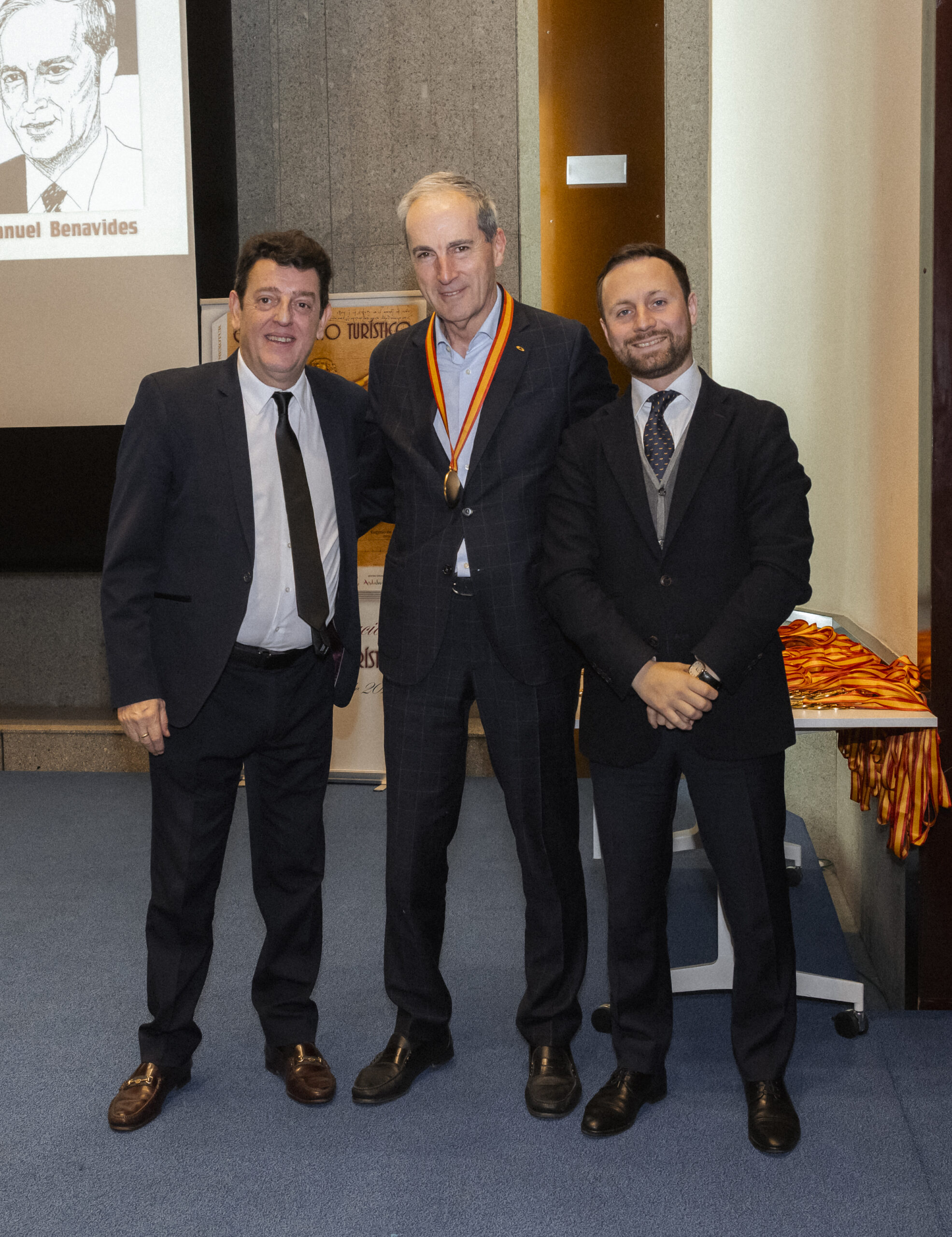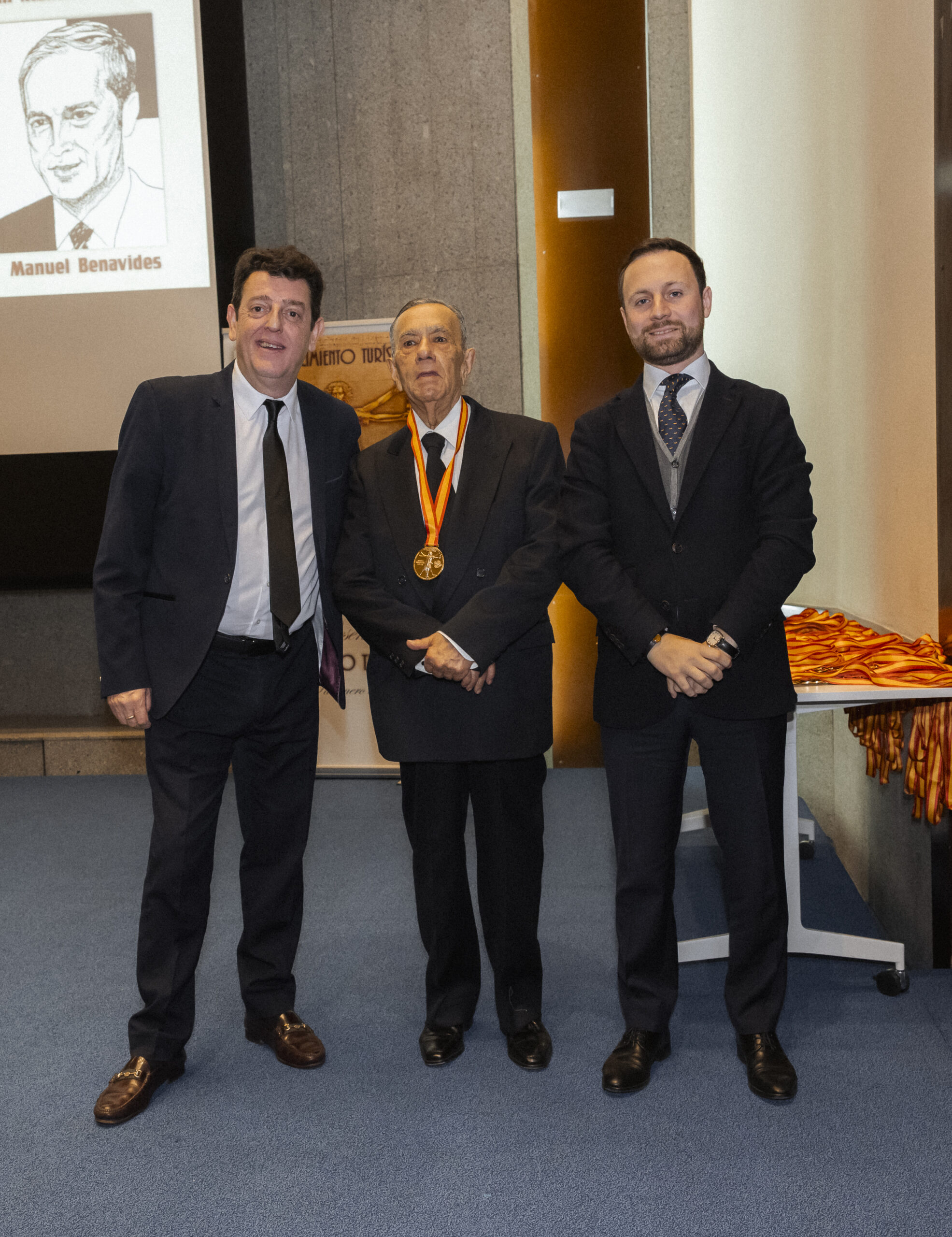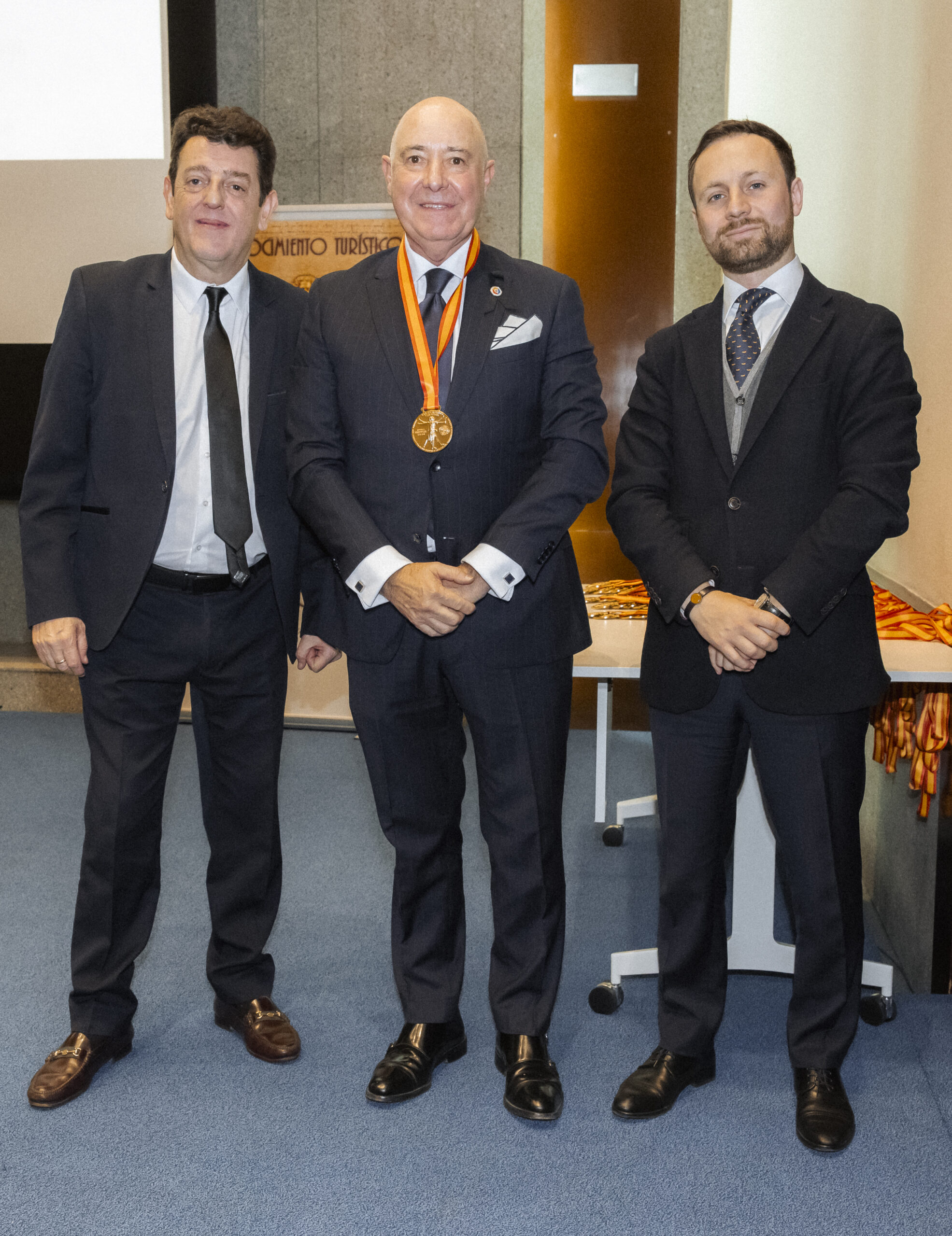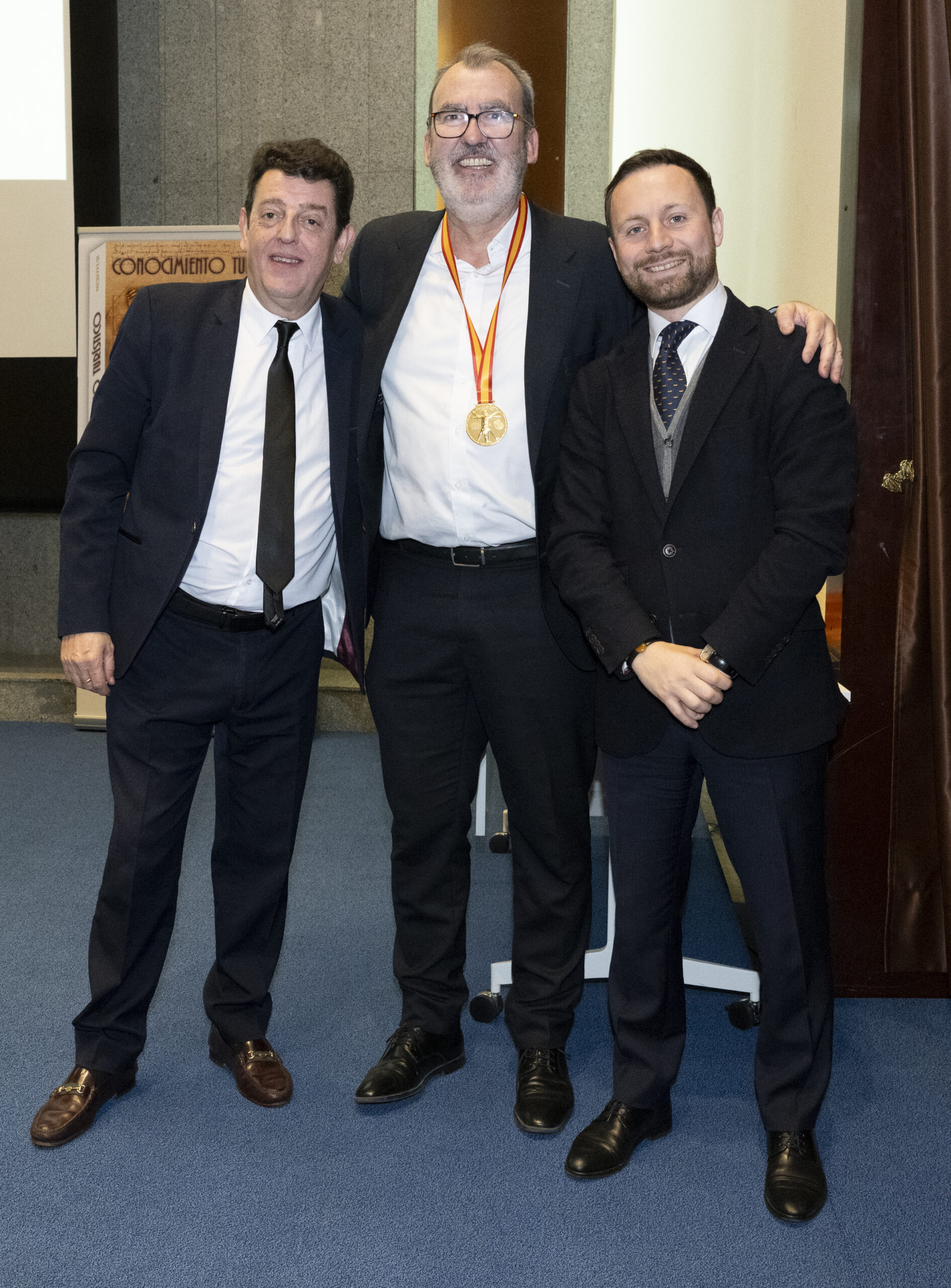 Los premiados se dirigieron al escenario del gran Auditorio de la Real Casa de la Moneda, donde el nuevo CEO del Grupo NEXO, Yago González, y el director de NEXOTUR, Eugenio de Quesada, les impusieron la Medalla del Conocimiento Turístico. Esta distinción, diseñada especialmente para la ocasión, representa el símbolo del turista concebido a partir del hombre de Vitruvio de Leonardo da Vinci, con las dos tipologías del Turismo: la vacacional y la profesional.