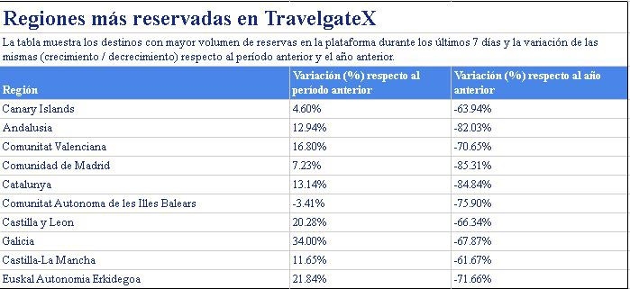 Por otra parte, pese a que no es la Comunidad que más crece en este sentido, el informe sitúa a Canarias como la que sigue disponiendo de la mayor cuota de mercado (27,2%) de todo el país, aunque cae un 1,4% respecto a la semana anterior. Su inmediato perseguidor es Andalucía, con el 13,4% del total y manteniéndose estable durante este periodo. Después, ambas con porcentajes también superiores al 10% se encuentran la Comunidad Valenciana y la Comunidad de Madrid (10,9% y 10,5%, respectivamente). Cataluña cae a la quinta plaza con solo el 9,7% de cuota.