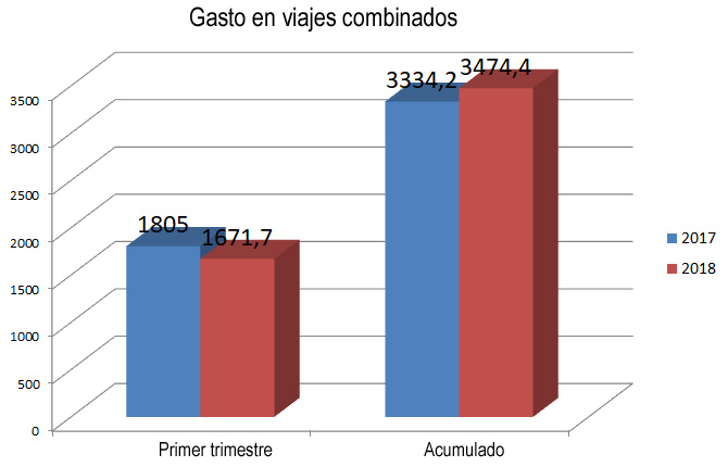 De la citada cantidad, 1.286,6 millones corresponden a ‘paquetes’ turísticos al extranjero, apartado que cierra el trimestre con un retroceso del 7,4%. La tendencia es similar en los viajes domésticos, con una tasa negativa del 7,2%, hasta los 385 millones de euros.