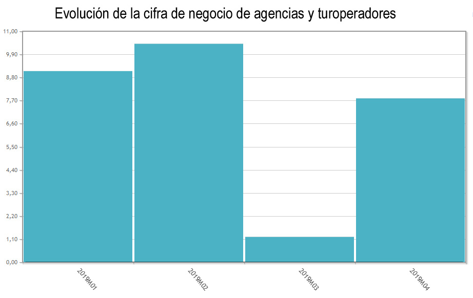 Por meses, el mayor crecimiento del volumen de negocio corresponde a febrero, con una variación positiva del 10,4%, seguido de enero con otro gran aumento del 9,1%. En marzo se dejó notar el retraso de la Semana Santa, registrándose un discreto incremento del 1,2%, mientras que abril se ha cerrado con un repunte interanual del 7,8%.
