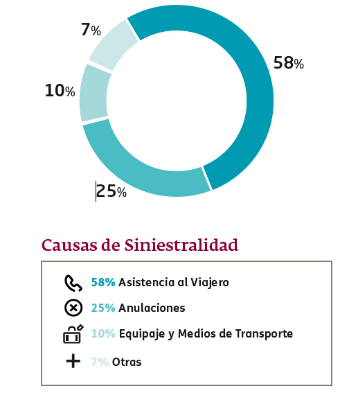 Después de los casos de asistencia, la anulación de viaje se convierte en la segunda razón más habitual por la que se hace uso de la cobertura del seguro. Un 25% de las reclamaciones totales se deben a imprevistos de última hora que impiden al viajero realizar su desplazamiento, siendo los motivos más frecuentes enfermedad del asegurado o de un familiar, cambios vacacionales, incorporación a un nuevo puesto de trabajo o accidente del asegurado. La tercera causa de siniestro más común, que representa un 10%, engloba incidencias relacionadas con el equipaje o la demora del medio de transporte.