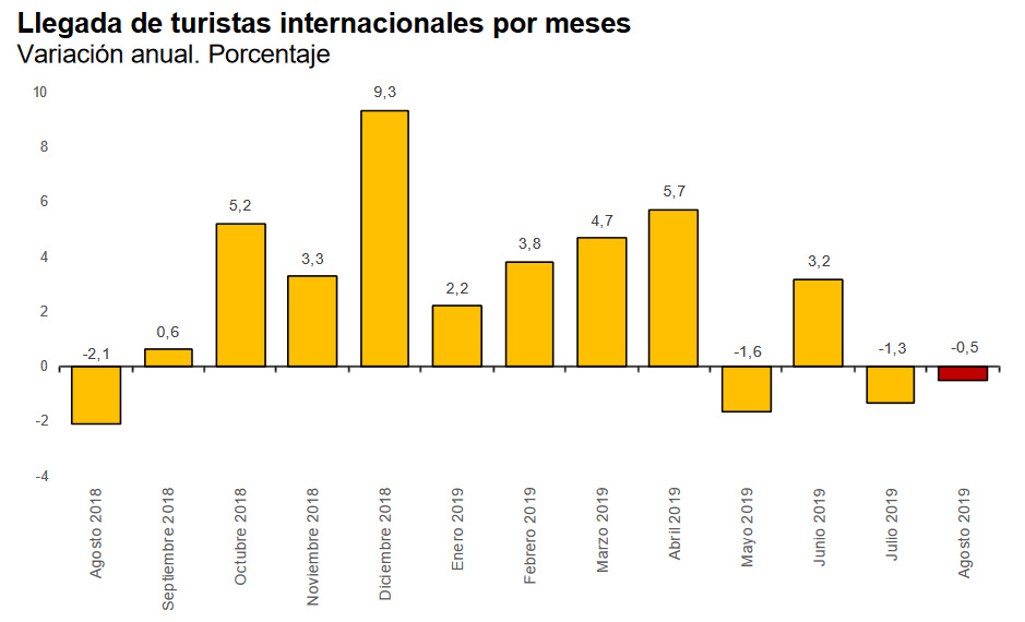 Según el último informe del Instituto Nacional de Estadística (INE), durante los ocho primeros meses de 2019 el país ha sido el punto de destino de cerca de 58,2 millones de turistas, un 1,5% más que en el mismo periodo de 2018. El gasto de los mismos asciende a 64.124 millones de euros, un 3,2% por encima de las cifras alcanzadas en 2018.
