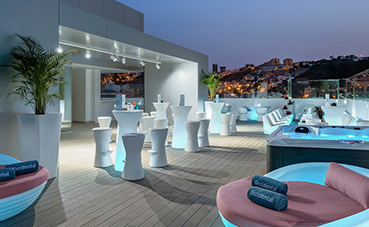 Aunque si hay algo por lo que este nuevo hotel va a ser conocido en todas Las Palmas de Gran Canaria va a ser por el Stage Rooftop Bar, situado en la octava planta del edificio y con vistas de toda la ciudad. En él será posible desde tomar el sol y refrescarse en su bañera de hidromasaje de día, y ejercitarse con vistas en la sala fitness contigua, hasta tomar un cóctel de autor por la noche.