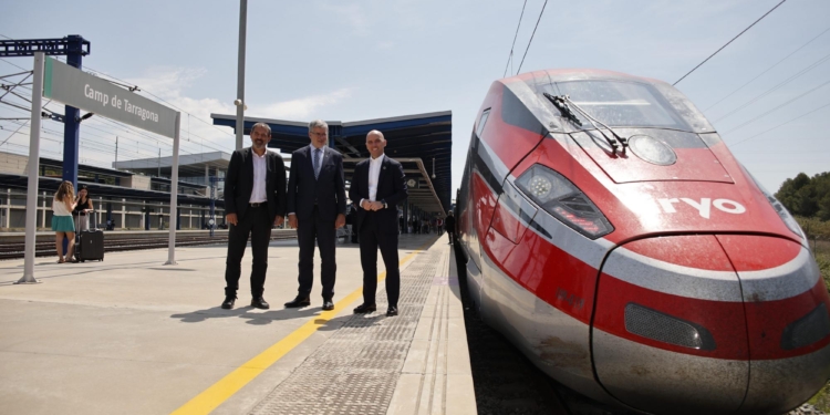 El operador ferroviario español iryo realizó ayer su primer viaje comercial entre las estaciones de Madrid Atocha y la estación Camp de Tarragona, entre las que ha parado en la estación de Delicias de Zaragoza. A la llegada en Tarragona, el primer tren comercial de iryo ha sido recibido por el alcalde en funciones de Alicante, Pau Ricomà, a bordo del que iban Xavier Flores, secretario general de Infraestructuras del Ministerio de Transportes, Movilidad y Agenda Urbana, junto Simone Gorini, consejero delegado y general manager de iryo, y el equipo directivo del operador.