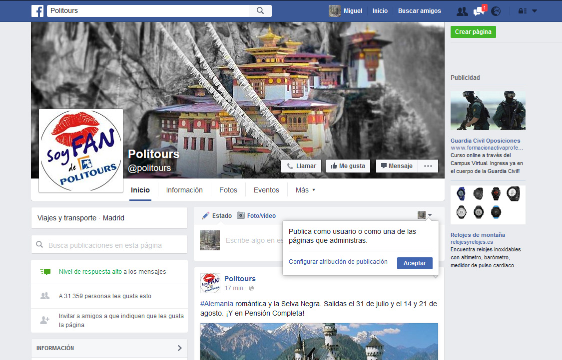 La presencia de Politours en las redes sociales es un claro ejemplo de la creciente importancia que tienen en las empresas dedicadas a la distribución de productos y servicios turísticos. Y es que, según reveló el portal Momondo, el 24% de los españoles afirma que las utiliza como fuente principal de inspiración antes de iniciar el viaje. Además, el 78% de las agencias de viajes las ve como una herramienta comercial esencial, según la última encuesta realizada por Bookingfax.
