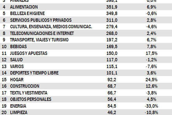 Al igual que en los dos años anteriores, el Sector Turístico ocupa la novena posición en un ranking liderado por la distribución y restauración con una inversión en publicidad de 483,1 millones, un 11,1% más que en 2015. Completan el podio automoción y finanzas, con 469,7 millones y 398,1 millones, respectivamente.