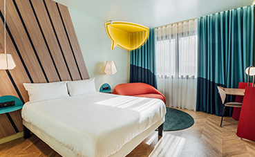 Novotel e ibis Styles se alían esta vez para brindar a los viajeros de ocio y negocios una nueva experiencia en un entorno dinámico, proyectado para el deleite de los creativos urbanos. Los dos hoteles, suman 252 habitaciones (156 en Novotel y 96 en ibis Styles): las tres primeras plantas del hotel acogen las habitaciones tematizadas en torno al mundo del cómic de ibis Styles y las cuatro últimas las habitaciones N-Room de Novotel.