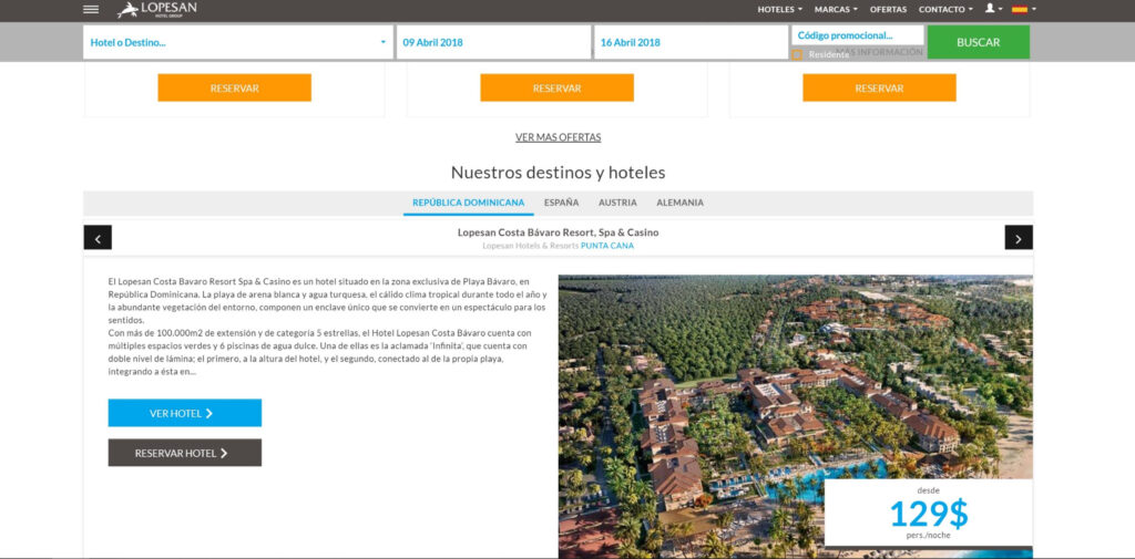 También incorpora ofertas para la próxima apertura, en verano de 2019, del primer hotel de la marca en República Dominicana, el hotel Lopesan Costa Bávaro. El alojamiento cuenta con una categoría cinco estrellas y más de 1.000 habitaciones. Otra novedosa sección está dedicada a las agencias de viajes, facilitando su proceso de reserva al contar con mayor disponibilidad de plazas hoteleras.