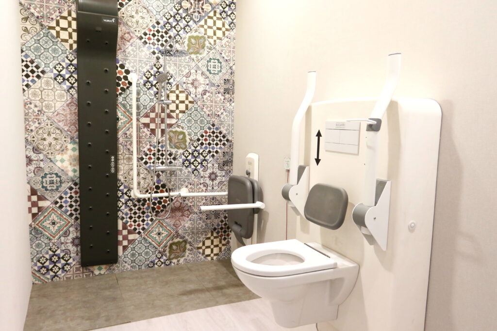 La zona de la habitación tiene instalado un sistema domótico de apertura de puerta, ventana e iluminación, y cuenta con una televisión que se controla por voz. La cama es doble articulada y el sofá dispone de un sistema de incorporación automática. Respecto al baño, tanto el inodoro como el lavabo son regulables en altura, y la ducha está equipada con asiento. Además, dispone de un secador de cuerpo entero automático, efectos de higiene rotulados en braille y otros productos de apoyo necesarios.