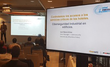 El foro estuvo protagonizado por varias ponencias relativas a la ciberseguridad, entre ellas la gerente de área de OneseQ, José María Ochoa, el cual se centró en el control de los accesos a los servicios críticos de los hoteles y la ciberseguridad industrial en edificios. Concretamente, trató temas como el control de los servicios críticos de los hoteles mediante la supervisión de la exposición y de los sistemas industriales, así como el interés de la estrategia digital por encima de la ciberseguridad, siendo el Sector Hotelero el tercer sector más propenso en el ranking de ciberataques.