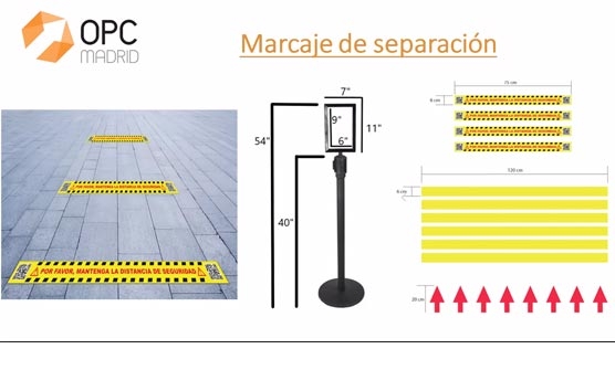En general, todas las recomendaciones del manual de OPC Madrid tienen que ver con cuestiones de aforo, distanciamiento e higiene. Así, por ejemplo, incluirá las cuestiones de aforo que marcan las distintas fases del plan del Gobierno (un tercio o la mitad del aforo habitual, según las fases), medidas para el distanciamiento entre personas (señalética), establecer protocolos de desinfección y control de temperatura en los accesos a los recintos, utilización de equipos de protección individual (mascarillas), contar con asistencia médica en el evento y la realización de eventos híbridos y online.