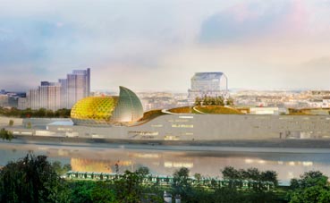 Este proyecto arquitectónico se levanta en la Isla de Seguin, en el oeste de la capital francesa, y crea una auténtica ciudad de la música, de 35.000 metros cuadrados de extensión, con un auditorio con 1.150 asientos, que se dedicará principalmente a la música clásica, una gran sala polivalente con capacidad para 4.000 personas sentadas o 6.000 de pie, un estudio de grabación, espacios para las empresas, tiendas y un gran jardín de 7.200 metros cuadrados.