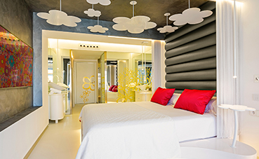 Five Flowers Hotel & Spa Formentera presenta 79 habitaciones y suites con vistas al mar y seis categorías distintas: Boutique, Premium, Family, Sky, Suite y Grand Suite. El huésped tiene a disposición una carta de almohadas y podrá dormir en una cama redonda de 2,2 metros u optar por una king o queen size. Todas las habitaciones, equipadas tecnológicamente y con iluminación domótica de escenas, están provistas de terraza.