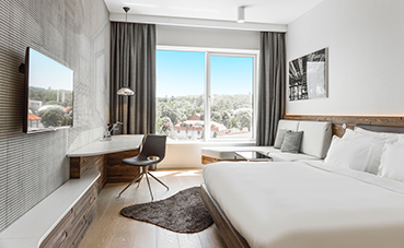 Diseñado por el estudio Graft Architects, las 230 habitaciones y suites del hotel se caracterizan por sus tonos terrosos, materiales naturales y piezas de diseño icónicas. Sus habitaciones cuentan con pinturas murales de Strauss & Hillegaart que van desde el suelo al techo, así como una serie de instalaciones premium, que van desde el Radisson Collection Sleep Experience hasta baños de alta gama, Wi-Fi de alta velocidad y TV por streaming.