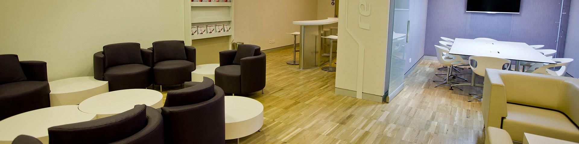 Las salas Club están acondicionadas como áreas de descanso, lectura, zona de reuniones, aseos y cafeterías autoservicio, con snack y bebidas