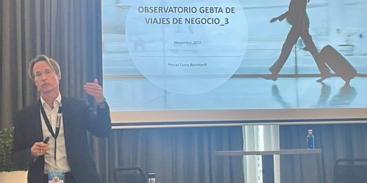 Marcel Forns, director general de GEBTA, durante su intervención en el XIV Congreso Nacional de Business Travel 2023 de IBTA en Fitur Business Travel.