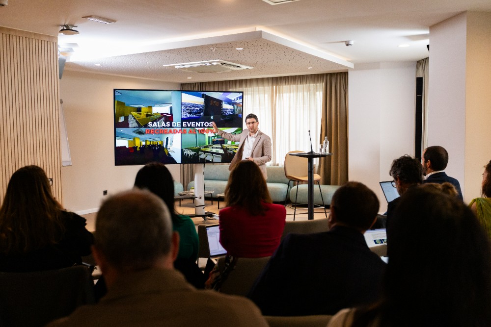 De esta manera, se han podido conocer los detalles de la estrategia y cómo RIU está ya trabajando para que el impacto de su operación sea el más positivo posible tanto en las comunidades como en el medio ambiente. Carlos Descotte, director de ventas del hotel Riu Plaza España, presentó las iniciativas sostenibles que se realizan en el hotel, así como las nuevas salas de conferencias construidas en la web espacial.