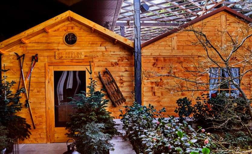 Emplazado en la terraza del restaurante Las Brasas, y con vistas al jardín del hotel, El Chalet presenta el aspecto exterior de una típica cabaña de madera como las que podemos encontrar en localidades alpinas como Gstaad o Zermatt.