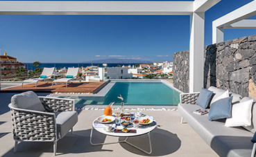 Con un estilo vanguardista con forma de barco, y una decoración inspirada en los corales que rodean la isla, este hotel está firmado por el arquitecto tinerfeño Leonardo Omar y cuenta con una ubicación privilegiada con el mar como telón de fondo.