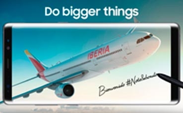 La primera de ellas será entre el 2 y el 6 de octubre, en los vuelos del Puente Aéreo de Iberia, un servicio que la aerolínea acaba de renovar incorporando nuevas ventajas para los clientes. Todos los pasajeros del Puente Aéreo que viajen esa semana estarán invitados por Samsung a un café o té con snack para celebrar a bordo el lanzamiento de Galaxy Note8. Para la semana del 9 de octubre habrá otra acción sin precedentes en el mundo de la aviación, según han informado ambas compañías, que se desvelará próximamente.