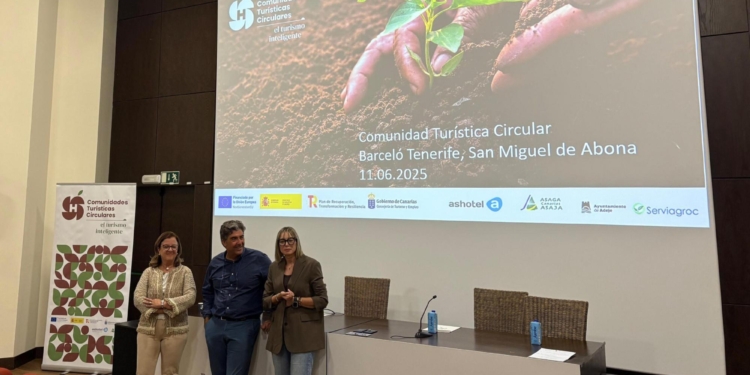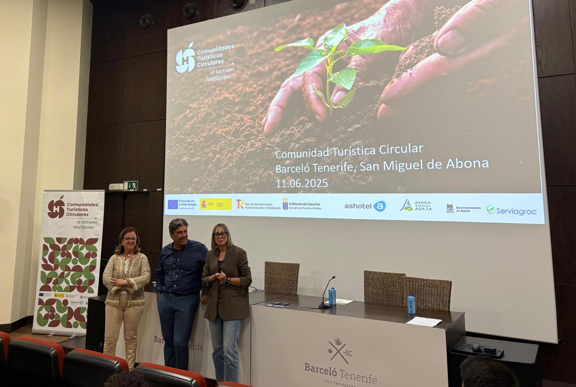Durante el encuentro, coincidieron en el potencial de crear una nueva comunidad de economía circular que incluya a un mayor número de establecimientos hoteleros Enrique Padrón, director de Innovación y Sostenibilidad de Ashotel; Ángela Delgado, presidenta de Asaga Canarias; y Laura Páiz, concejala de Turismo del Ayuntamiento de San Miguel de Abona. Un alto porcentaje de los residuos generados en estos hoteles es materia orgánica, la cual tiene un gran valor para la regeneración de suelos y cultivos.