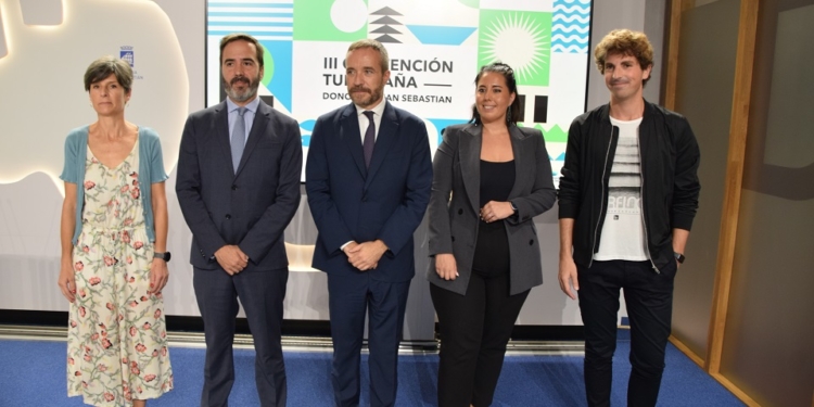 En el acto en el que se presentó ante los medios de comunicación la III Convención Turespaña, estuvieron presentes el director general de Turespaña, Miguel Sanz, junto al concejal de Cultura, Euskera y Turismo en el Ayuntamiento de Donostia / San Sebastián, Jon Insausti, acompañados por Javier Hurtado, consejero de Turismo, Comercio y Consumo en el Gobierno Vasco; y Azahara Domínguez, diputada de Movilidad, Turismo y Ordenación del Territorio en la Diputación Foral de Gipuzkoa y con la presencia de la directora gerente de Donostia San Sebastián Turismoa, Isabel Aguirrezabala,