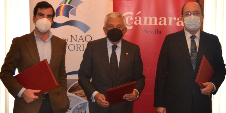 El Presidente de la Cámara de Comercio de Sevilla, Francisco Herrero, el director del Sevilla Congress and Convention Bureau, Manuel Macías, y el presidente de la Fundación Nao Victoria, José Fernández de Cabo, han suscrito un acuerdo de colaboración por el cual la Cámara de Comercio, a través del Sevilla Congress and Convention Bureau entidad que está gestionada por la institución Cameral, incluirá y promocionará a la Fundación Nao Victoria, así cómo el espacio expositivo y de reuniones para eventos de la Primera Vuelta al Mundo, con el fin de dar mayor difusión a esta efeméride y a los actos que se desarrollan en torno a la conmemoración de la la Primera Vuelta al Mundo.
