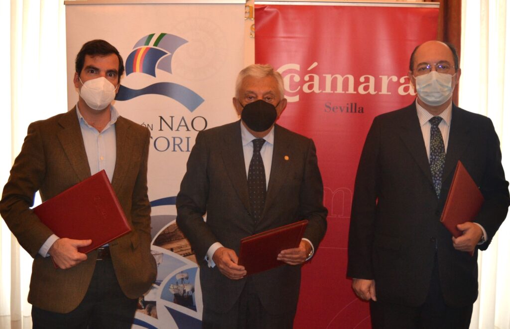 El Presidente de la Cámara de Comercio de Sevilla, Francisco Herrero, el director del Sevilla Congress and Convention Bureau, Manuel Macías, y el presidente de la Fundación Nao Victoria, José Fernández de Cabo, han suscrito un acuerdo de colaboración por el cual la Cámara de Comercio, a través del Sevilla Congress and Convention Bureau entidad que está gestionada por la institución Cameral, incluirá y promocionará a la Fundación Nao Victoria, así cómo el espacio expositivo y de reuniones para eventos de la Primera Vuelta al Mundo, con el fin de dar mayor difusión a esta efeméride y a los actos que se desarrollan en torno a la conmemoración de la la Primera Vuelta al Mundo.