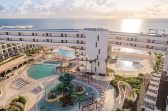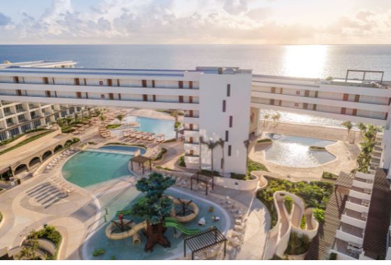 En cuanto al ocio el hotel ha puesto a disposición, cine, club disco, fitness center, cancha de tenis, minigolf, yoga e incluso tirolina. Además, los pequeños podrán disfrutar de actividades como el Baby Explorer Club, Adventura Club y Emoji Teens Club. Las zonas de baño cuentan con una infinity pool con vistas al mar, una reef pool que es solo para adultos, y un aquapark. Y además, a pocos pasos se encuentran las aguas del Caribe.