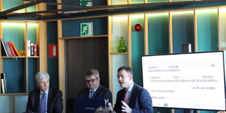 El director general de Optitur, Rafael Pintado; el fundador y director general de Innova Management, Alberto Marín, y el director general del ITH, Álvaro Carrillo de Albornoz, han realizado una breve introducción sobre los aspectos esenciales abordados en el proyecto de análisis.