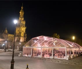 La reunión comenzó en Box Sevilla, el auditorio de la agencia Beon Worldwide situado en la Isla de la Cartuja, que se transformó en un plató de televisión. Los asistentes pudieron disfrutar de un show con intervenciones, monólogos, entrevistas y ponencias, simulando el exitoso formato americano de televisión ‘late night show’. Este mismo día, la Plaza de España, uno de los espacios más emblemáticos de Sevilla, cobró un protagonismo especial, ya que se instaló una carpa transparente de estructura octogonal de 20 x 40 y una altura de nueve metros donde se pudo disfrutar de la cena.