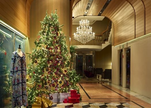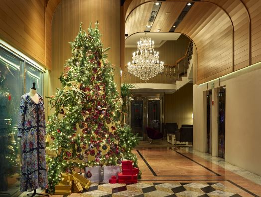 «Cuando recibimos el encargo de diseñar el árbol de Navidad solidario decidimos hacer un árbol diferente enlazado con el proyecto y que respirase los valores de nuestra firma. El resultado es una escalera de madera forrada con diferentes especias de coníferas, eucaliptos y musgos, dónde el verde envuelve la estructura de madera y un conjunto de bolas de navidad suspendidas en el aire forradas con tejidos florales de nuestra colección «Orquídeas» para adornar el árbol».