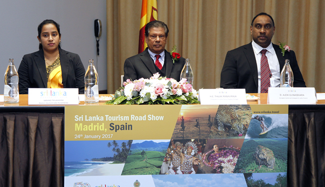 La presentación estuvo a cargo del embajador de Sri Lanka en España, Francia y Portugal, Tilak Ranaviraja, el consejero comercial Alexi Gunasekera y la directora adjunta de la Oficina de Promoción Turística Sarangi Thilakasena. En ella se incidió en la paz social y normalidad política que vive el país desde hace años y la biodiversidad de sus espacios naturales.