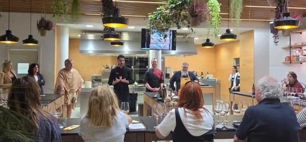 Organizada por el Patronato Municipal de Turismo de Tarragona, la acción tuvo lugar en la prestigiosa escuela de cocina Mimo Bite The Experience y combinó patrimonio, historia y sabores con una propuesta basada en la gastronomía romana maridada con vinos locales, bajo el sello del colectivo Tàrraco a Taula. Esta experiencia sensorial no solo puso en valor el legado de la antigua Tarraco, sino que también reforzó el carácter único de la ciudad como destino enogastronómico con identidad propia.